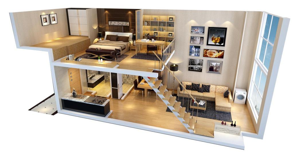 SOHO结构与平层结构的最大区别就是拥有灵活的空间,独特的挑空设计既节省了实际空间又可以按自己的意愿灵活安排摆设,不必受平层空间的拘泥。虽然销售时按一层的建筑面积计算,但实际使用面积却可达到销售面积的近2倍。高层高空间变化丰富,购买者可以根据自己的喜好随意设计。