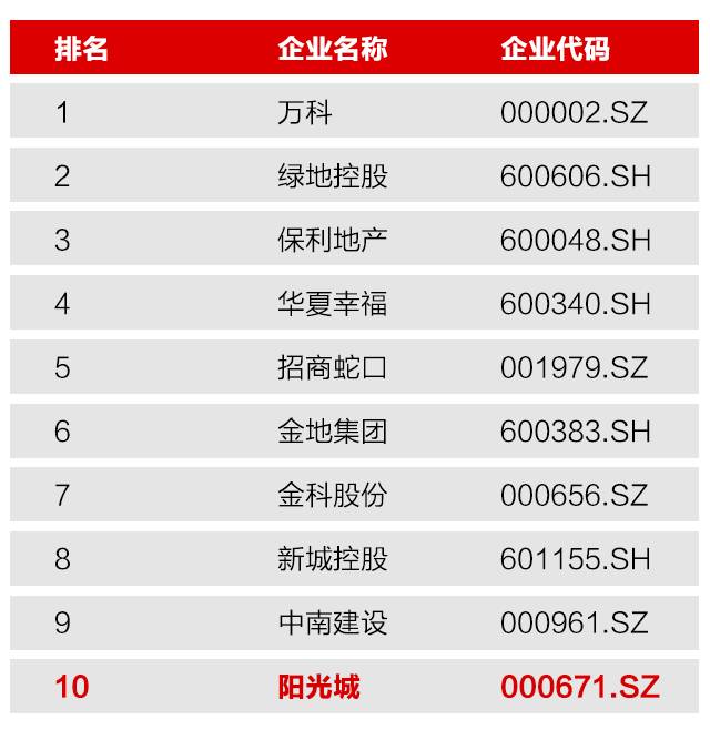 A股十强 绩效称王 阳光城闪耀中国上市房企百强榜