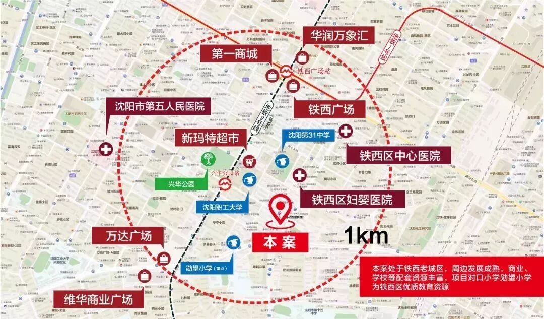 地块周边商业、学校、医院、公园等配套一应俱全,项目对口小学——勋望小学是铁西区优质教育资源。此外,项目临近沈阳地铁9号线兴华公园站,计划于2018年底试运行。