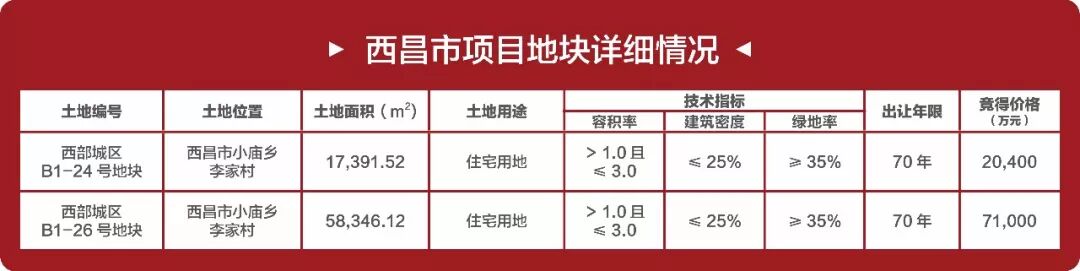 2018年4月26日,阳光城成功拍得西昌市西部城区B1-26号地块、西部城区B1-24号地块,成交价9.14亿元。