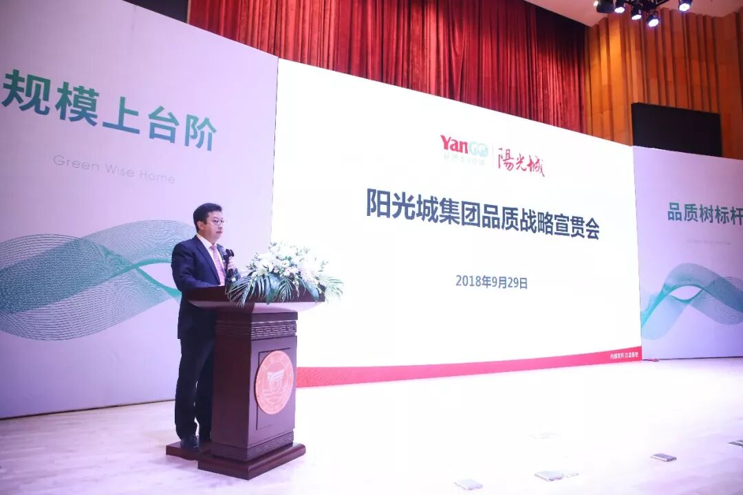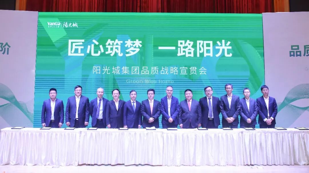 阳光城集团执行董事长兼总裁朱荣斌先生向全体阳光人宣导阳光城集团升级产品品质和服务的坚定决心,全体高管进行品质宣言宣誓,并通过《绿色智慧家白皮书》推出中国首个健康智慧住宅产品标准及实施体系。