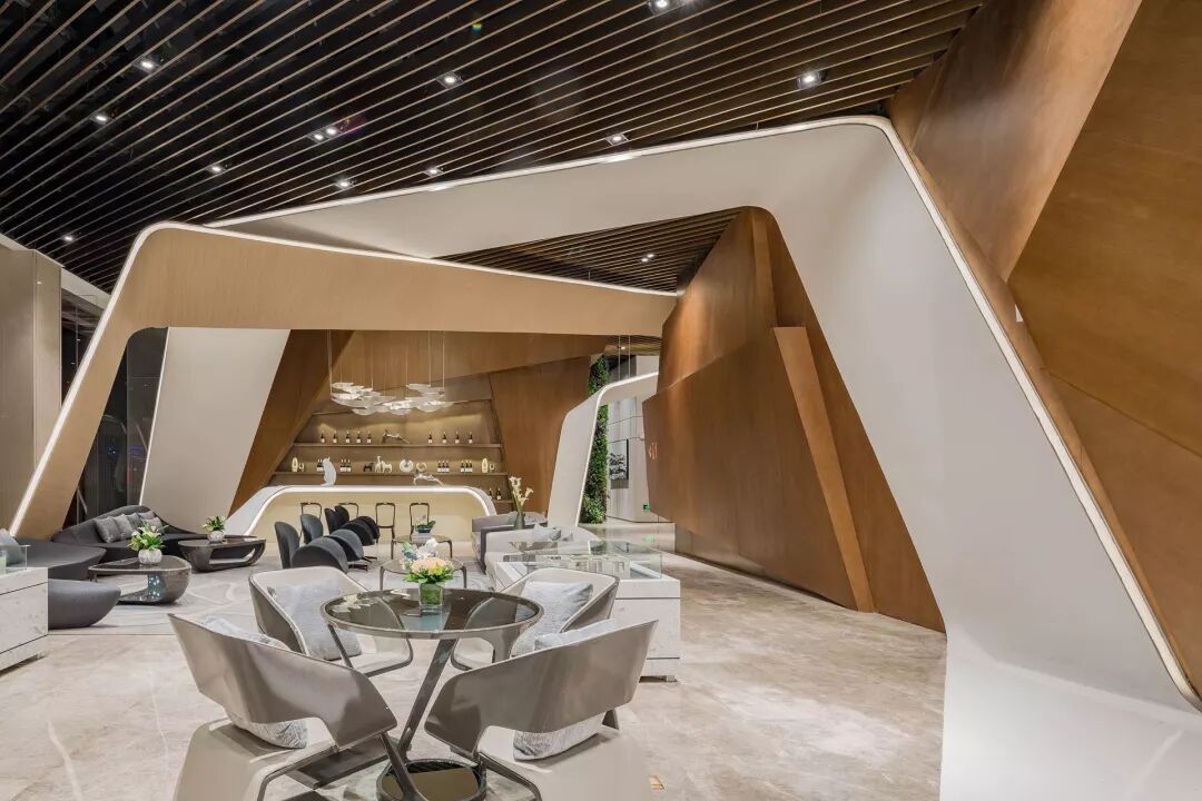 在规划设计阳光城·檀悦销售中心时,关于功能与审美二者的摆放,双子座凌子达做到了有效的平衡。在充分保障空间及动线的合理性基础之上,审美才能开始舞蹈。阳光城·檀悦销售中心大量的结构化设计使作品体量感明显,造型张扬、个性,另一方面,作品在材料运用和空间构造上又显得额外低调和柔和。