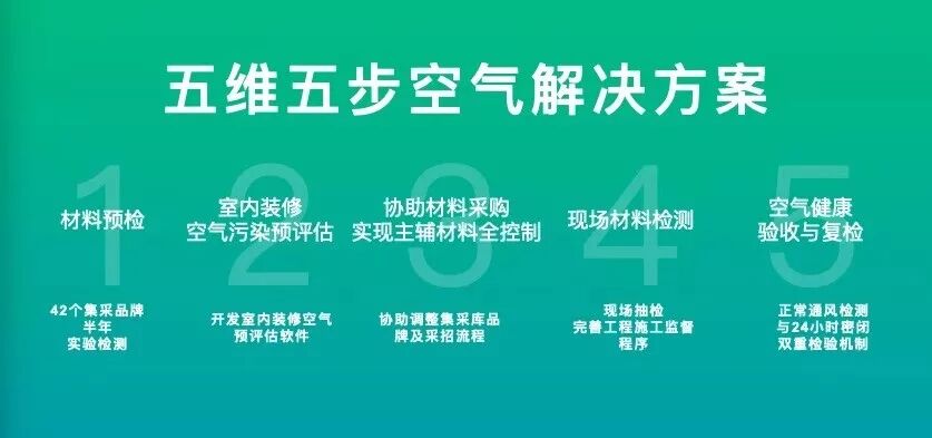 “绿色智慧家”概念包括绿色健康、智慧生活、家文化在内的三大维度。其中“绿色健康”这一维度,又划分了空气、水、光、舒适、精神、健身、节能环保这七大标准。而保证室内空气质量是一个重要难点,实验表明,精装房的室内空气质量污染,不仅来自于家具板材等主要材料,装修时用的各种涂料和胶水也是甲醛的重要来源。