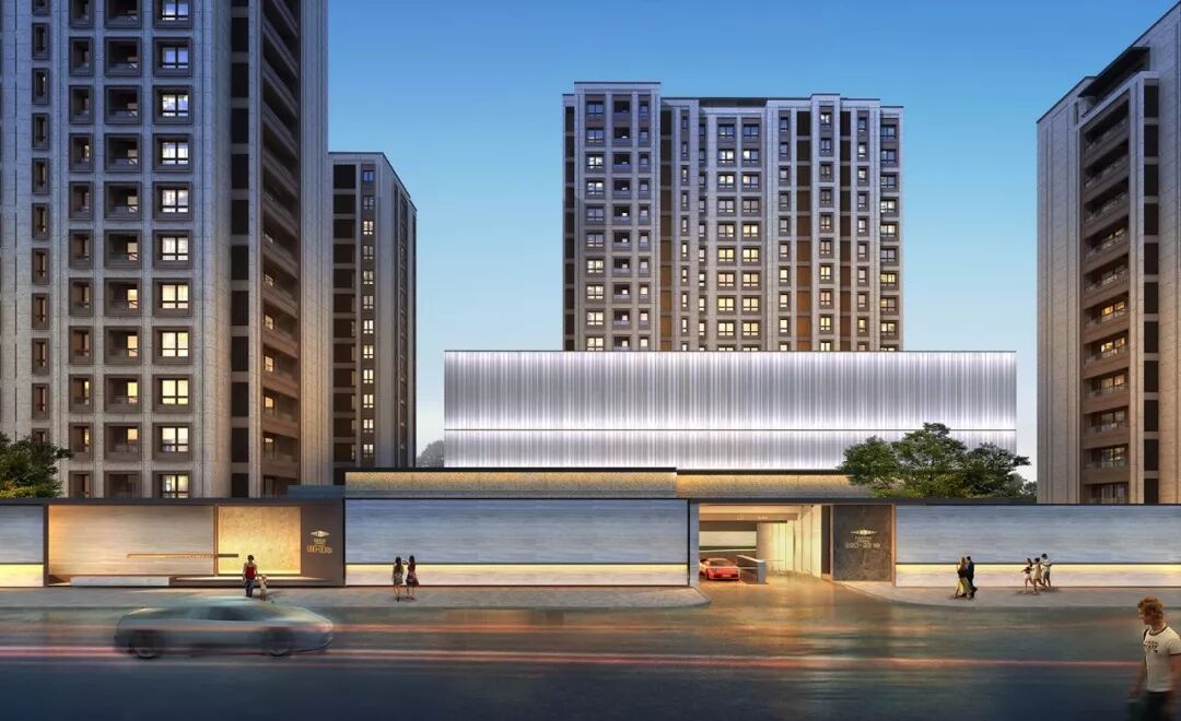 如果说,阳光城·滨江悦是一种隐,是以观察者的角度来面对当下,以“融”的姿态面向未来,那么阳光城·檀悦101则是一种扬,是在城区纵深中的一种自我表达。考虑到其所处的区域城市微环境较为凌乱,需要一种全新的存在性来提振,檀悦101采取了以更强的体量感,全新的,既现代,又古典,既西方,又东方的语言要素来表达。