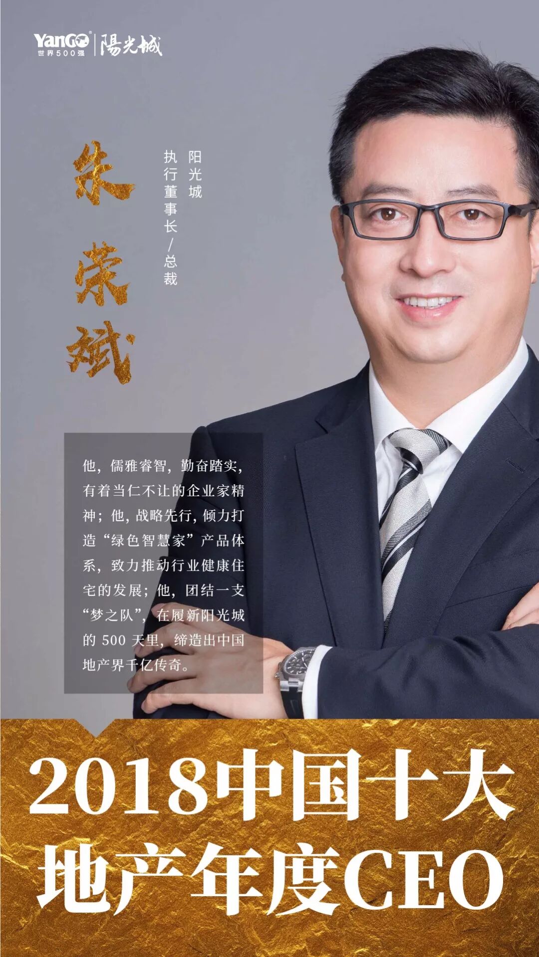 12月12日,由乐居财经、新浪财经、中国企业家、中房网联合主办,房地产业协会、中国物业管理协会、全国工商联家具装饰业商会共同指导的“致敬改革开放·致远美好生活——2018中国地产新时代盛典”在北京隆重开幕。 盛会之上,阳光城集团执行董事长兼总裁朱荣斌当选“2018中国十大地产年度CEO”,同时阳光城全国8个区域的总裁获得 “2018中国地产经理人100强”。