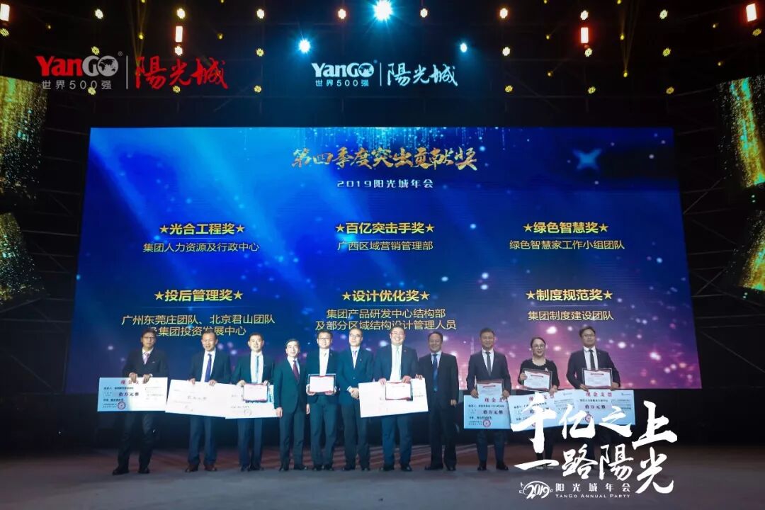 过去的一年是阳光城飞速成长的一年,每一个团体都为了阳光城的光荣与梦想而奋斗,共7个部门获得2018年阳光城“第四季度突出贡献奖”、共10个区域与部门获得2018年阳光城“卓越奖”,以此嘉奖各个团队为阳光城良性发展而付出的努力及取得的成绩。