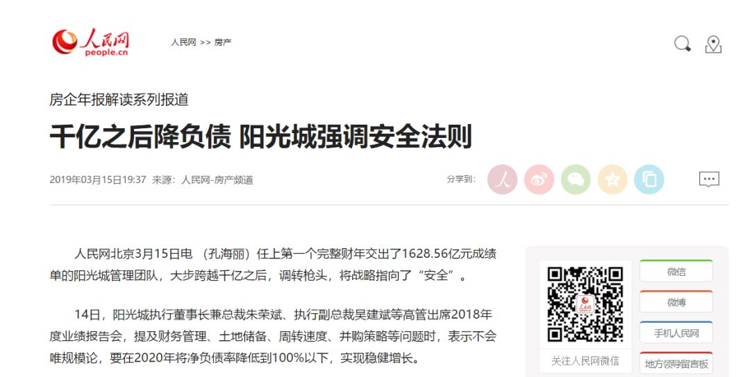 2018年,阳光城首次站上千亿舞台, 2018年,阳光城现金流达到了历史最高水平, 2018年,阳光城销售规模达到1628.56亿元,同比增长70.28%, 2018年,阳光城净负债率降至182.22%,同比减少70个百分点, 这些mission impossible在媒体眼中,是如何解读的呢?