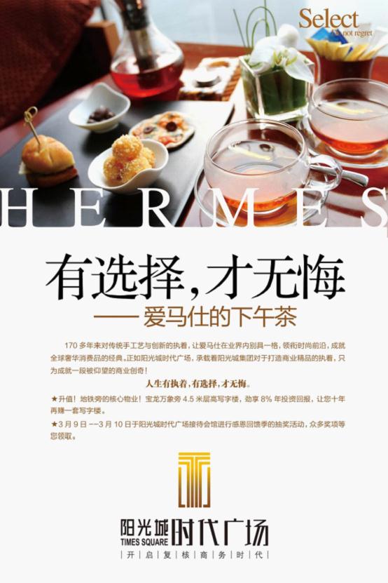 3月9日至10日,阳光城集团为感谢广大客户和新老业主的对于时代广场项目的关爱,在位于乌山荣御的接待会馆举办“爱马仕的下午茶”活动。邀您暂别城市生活的喧嚣,放下工作的压力,细细品味茶的朴素与淡泊,感受茶的宁静和清新,让您度过一个轻松愉快的周末。