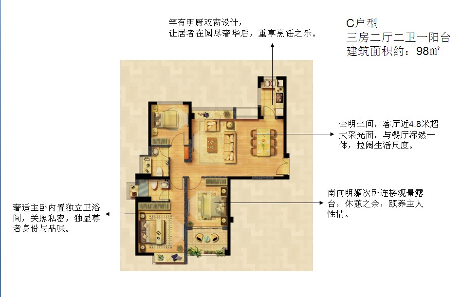98平小三居,首置一步到位更划算