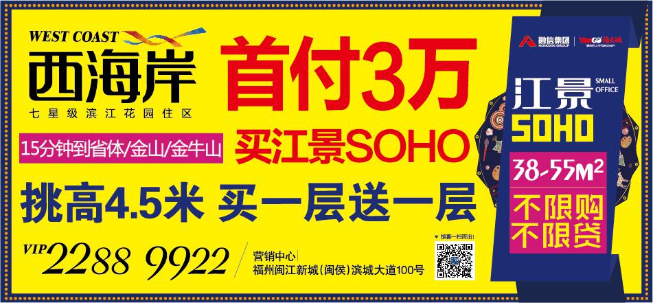 西海岸【江景】SOHO,首付3万即享3000米一线江景,4.5米挑高“领域”买一层送一层,宜居住可办公,成就38-53㎡江岸愉“跃”情调,不限购不限贷。复式格局自由多变、空间上下布局、起居动静分区、全面满足不同居住要求者的生活所需,双层空间更极大地拓宽视野范围。15分钟畅达福州,轻松悠享闽江生活住区!