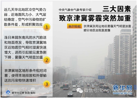 继2月20日北京首次启动空气重污染“黄色预警”后,北京市空气重污染应急指挥部21日12时发布,全市由现行的空气重污染“黄色预警”级别提升至“橙色预警”级别。为何此轮雾霾持续时间如此之久、预计程度如此之严重?专家认为,一是地面回暖缓慢,静稳气象条件不利于污染物扩散,短期难以显著改善。二是北京市污染物快速积累,与偏南风导致的跨省市区域输送有很大关联。