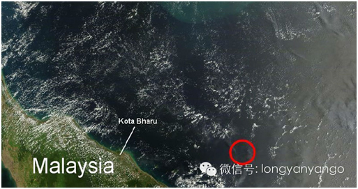 NASA一颗卫星在3月9日11:35拍摄了相关海域的一张250米精度的卫星图像,图片定位约在104.6E,6.1N。右下角红圈疑似马航飞机失联事发地点。
