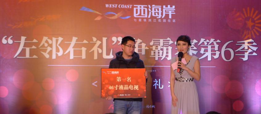 抽奖环节,激动时刻,甚至连演职人员也和业主一起来了大合唱“电视 电视 哗~~~”搞的美女主持频频紧张,以为自己口误。最终一位气质妇女抱得幸运大奖,激动的直奔台上。